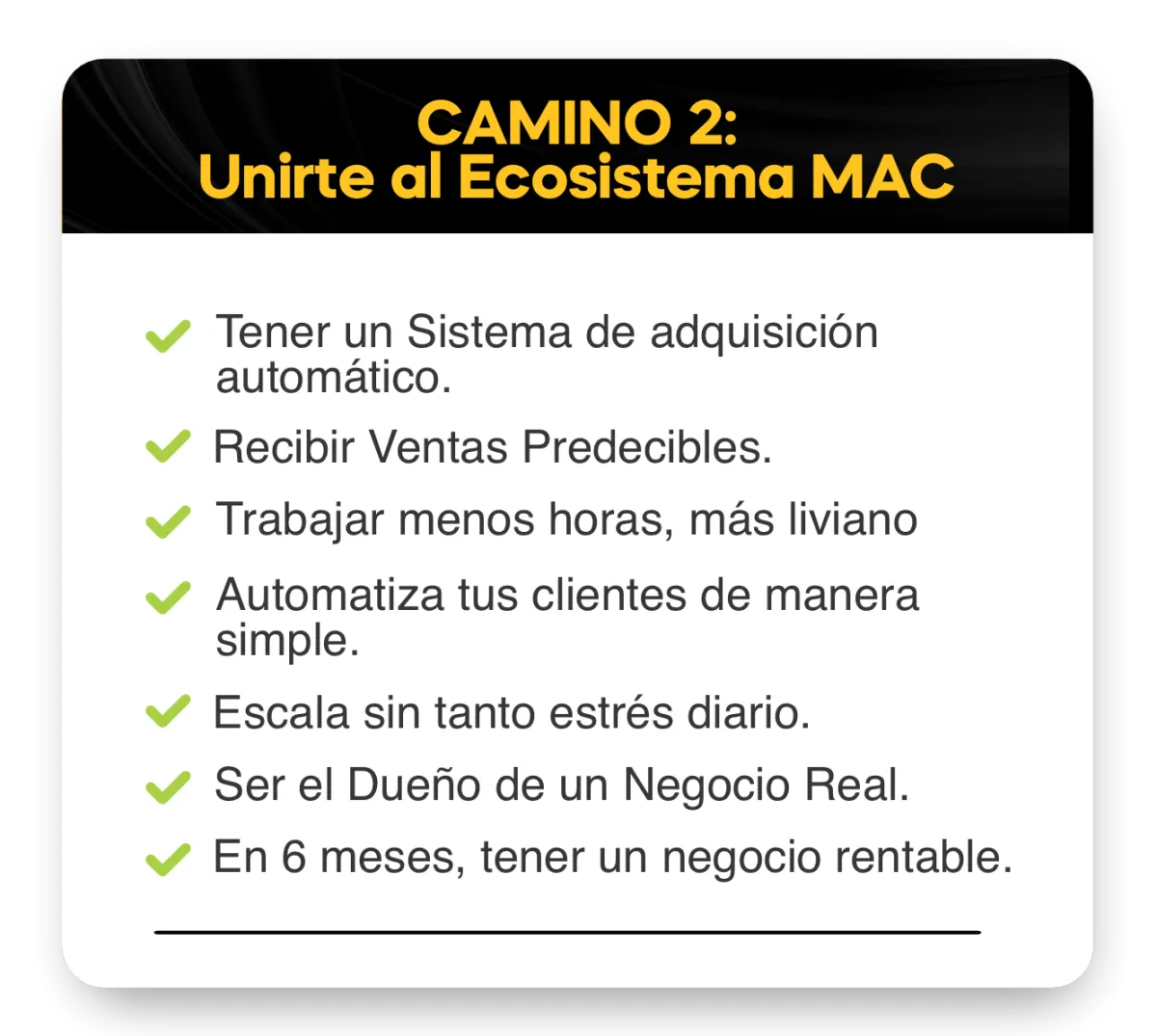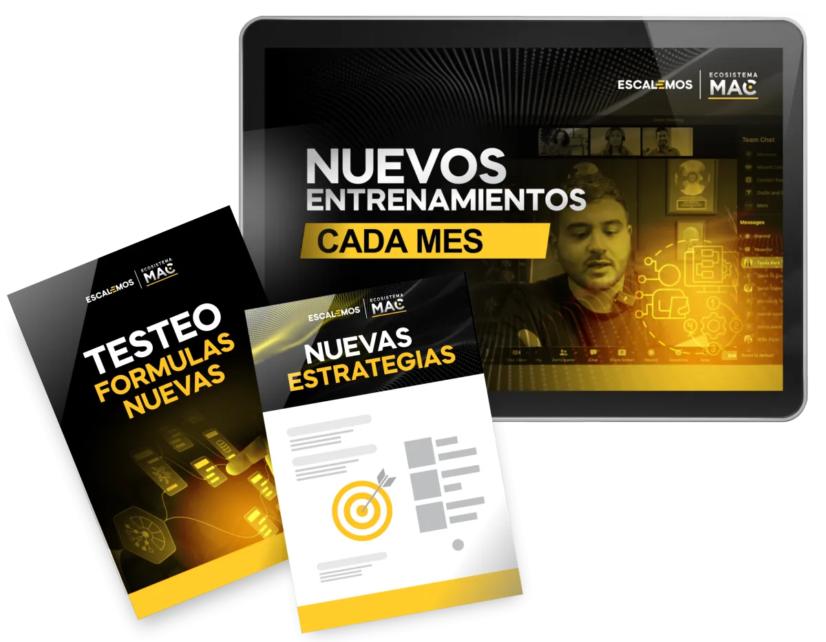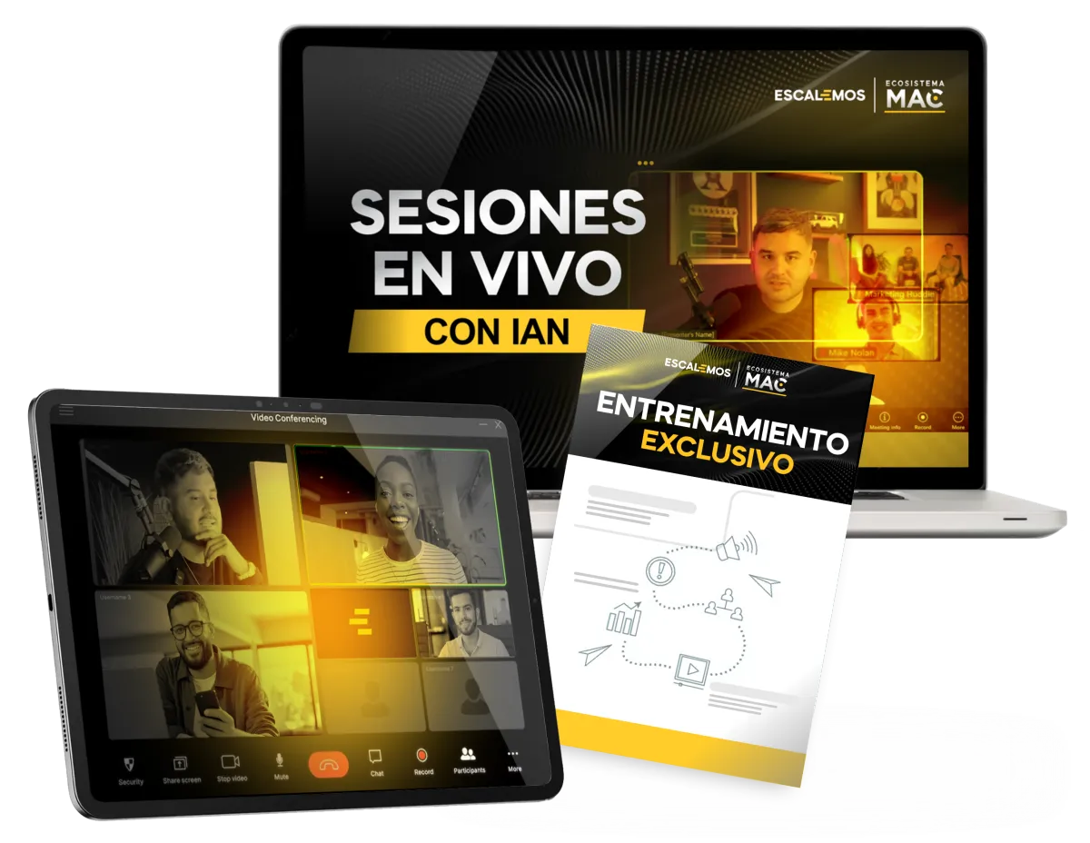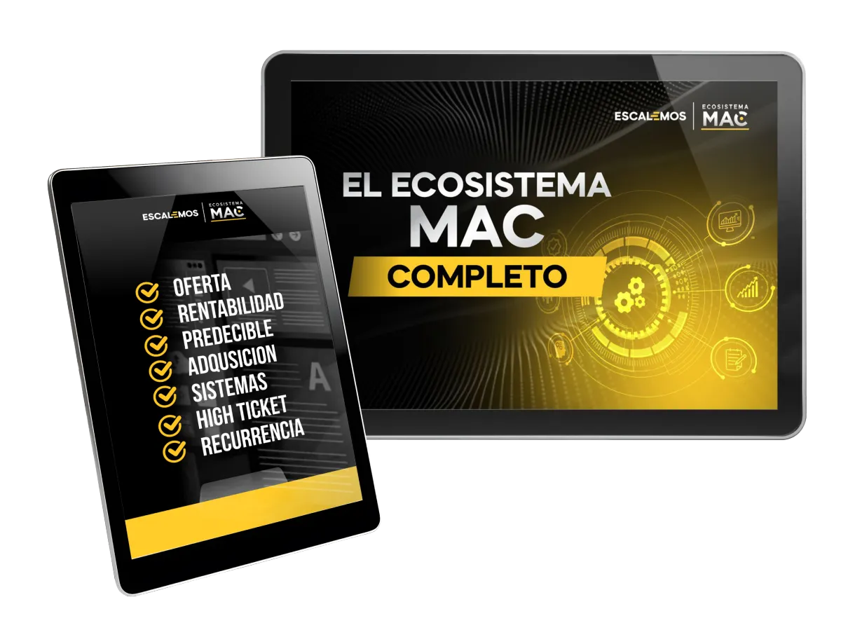 El sistema está diseñado para emprendedores, coaches, infoproductores, agencias, dueños de negocios, no expertos en tecnología. Todo está desglosado en pasos simples y accionables con plantillas y documentos faciles de usar que puedes copiar y pegar. También incluimos una sección dentro de Ecosistema MAC para la configuración técnica que necesitas para empezar.