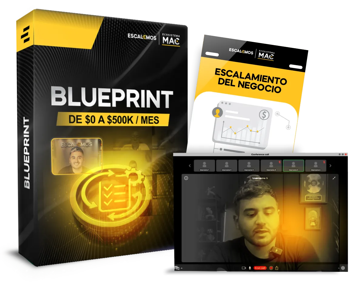 El blueprint y videos de cómo exactamente escalamos nuestro negocio de 0 a $500K/mes. Cada fase, cada paso, cada instrucción.