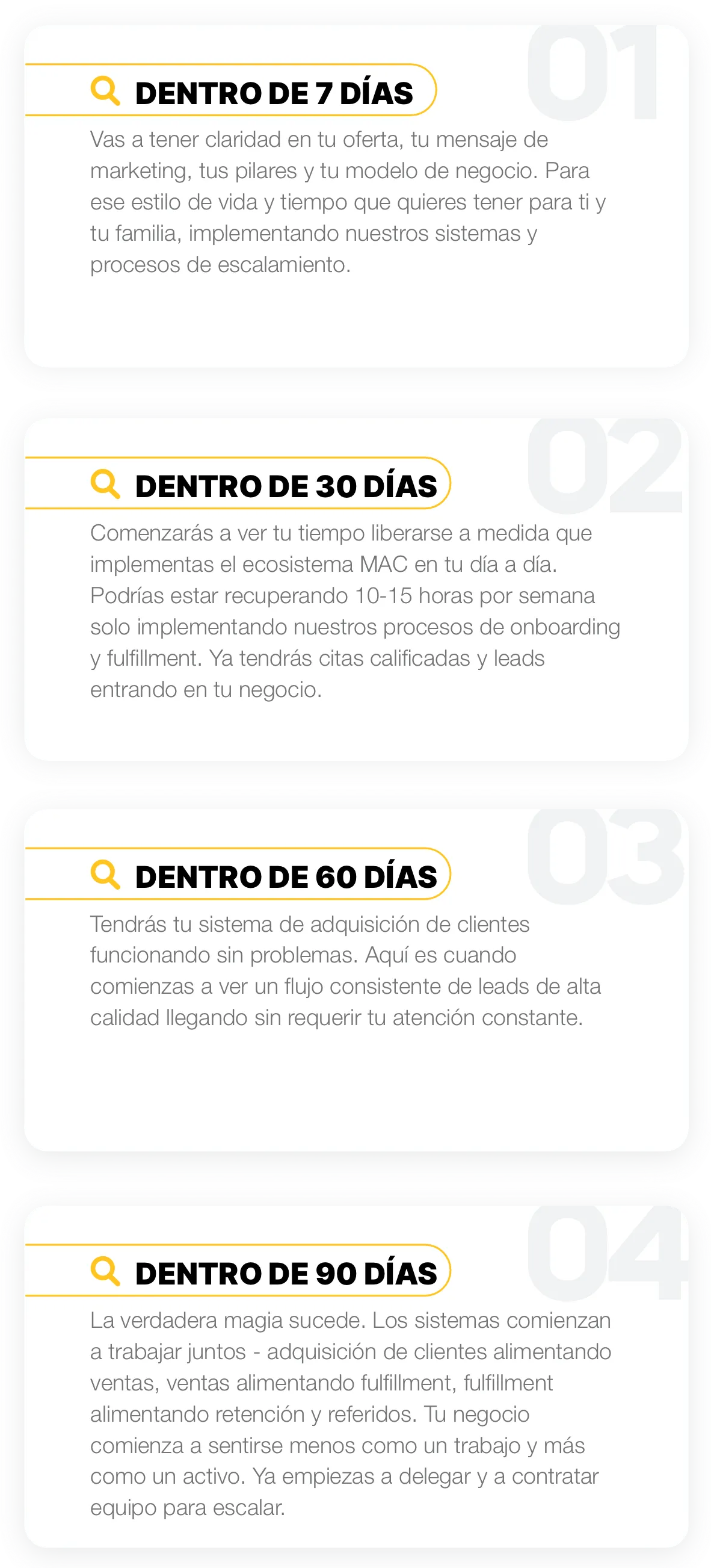 Prueba el Ecosistema MAC completamente sin riesgo por 30 días. Si no te gusta lo que recibes o sientes que no recibiste valor para tu negocio - Te daremos un 100% de reembolso. Sin preguntas, sin excusas, solo escríbenos a [email protected]